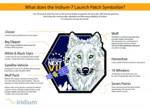 Each component of this Iridium® NEXT Launch 7 patch has its own special and unique meaning. Representative of guardianship, strength, loyalty and respect, the wolf is symbolic of Iridium’s vast partner ecosystem. Traveling in packs, wolves exude a sense of community and collaboration, embodying Iridium’s core value of teamwork. Without its own “wolf pack” of more than 400 industry partners, Iridium would not be the company that it is today, delivering a superior service to more than 1 million users across the globe.