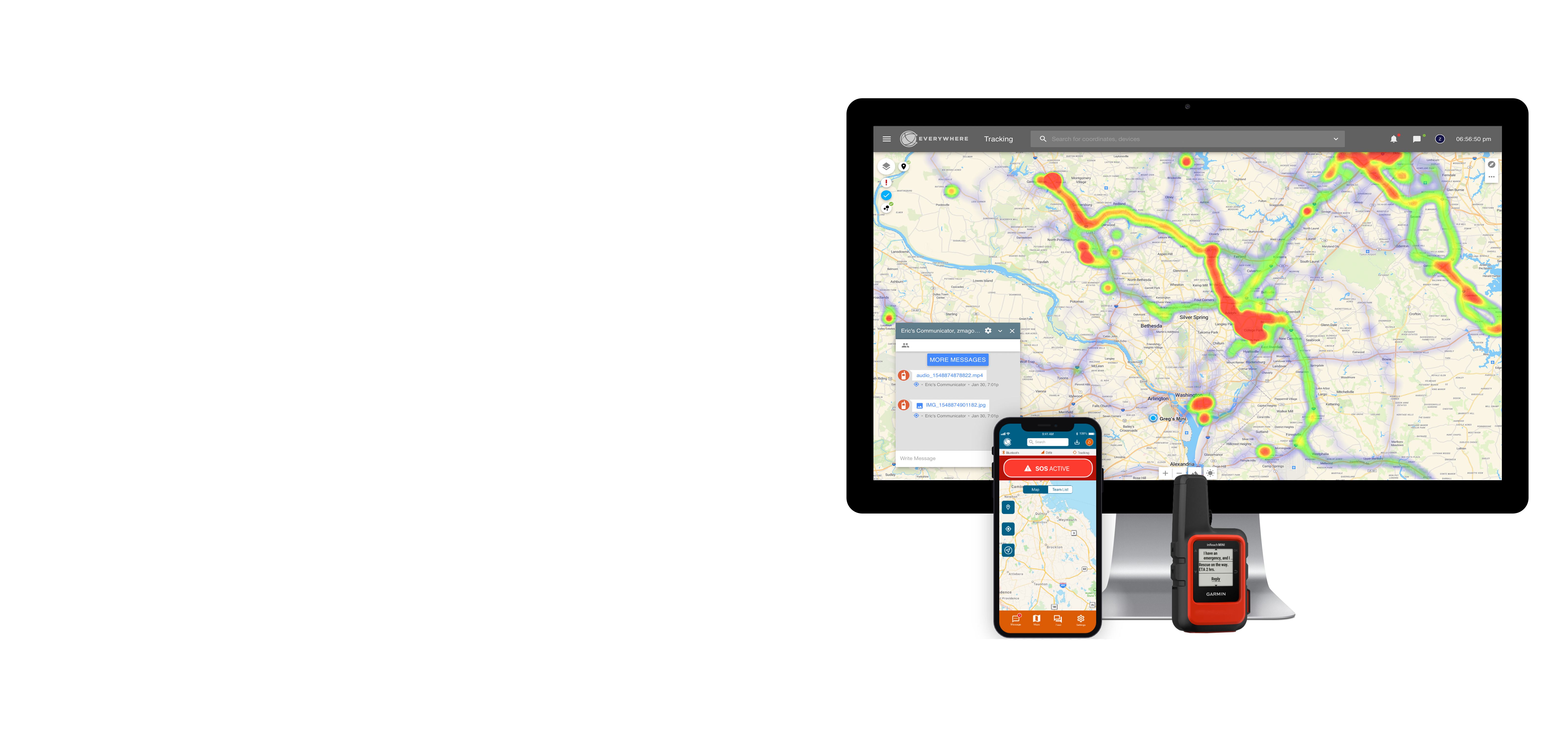 The EVERYWHERE Hub provides situational awareness and asset tracking by consolidating position, status, and message information and enabling data communication with two-way capable devices. The ability to visualize the whole picture – knowing where your assets are, and what state they are in – ensures that your personnel can effectively manage your remote operations.