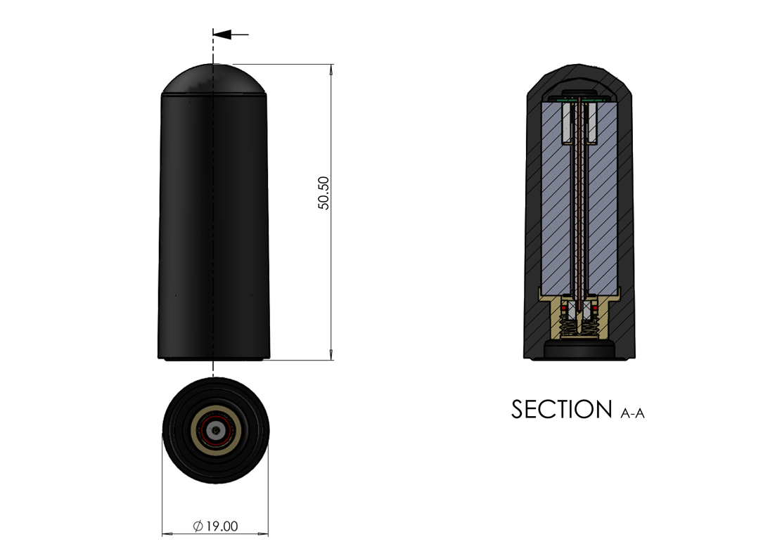 - 50.5mm long x 19mm dia. (with SMA connector)